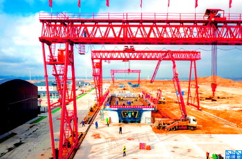 本报烟台3月29日讯(记者 梁莹莹 通讯员 于明骏) 两台布料机发出阵阵轰鸣,混凝土从管道中喷涌而下,几十名工人在钢筋骨架上紧张地操作……3月27日,中铁大桥局潍烟铁路3标段项目部北马制梁场内,潍烟铁路(龙口段)首榀箱梁成功浇筑,标志着潍烟铁路(龙口段)的箱梁预制工作拉开序幕,将为接下来的架梁和铺轨施工创造有利条件。