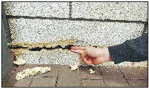 3月29日,记者在汉和十园小区1号楼1单元东侧看到,一处外墙裂开近6米长的缝隙,裂缝从墙西拐角延伸至墙北,最宽的地方有两指左右,约3厘米宽。从裂缝往里触摸,感觉外墙“外包”在墙体。裂缝周围有白色凝结物,据知情人介绍,外墙前期修补过。