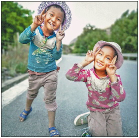 ◤香格里拉偶遇一对小姐妹 张清 摄