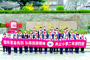 近日,养正小学二年级四班在烟台山公园烟台抗日烈士纪念碑前开展“缅怀革命先烈,弘扬民族精神”为主题的祭扫活动,深切缅怀革命先烈,虔诚祭奠不朽英魂。