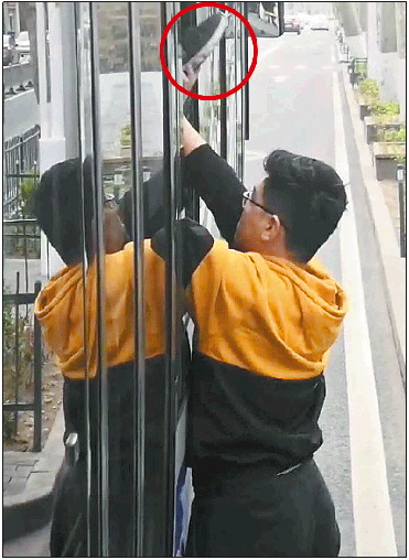 孙境泰将猥亵男的脚塞回车内。 视频截图