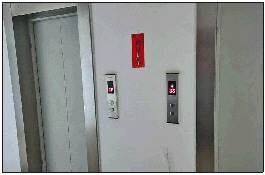 记者采访时,出故障的电梯(左)暂时停运。