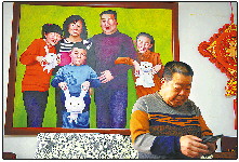 庞曰龙酷爱绘画,风筝的造型都是他自己绘制的,就连家里的全家福都是他自己画的。