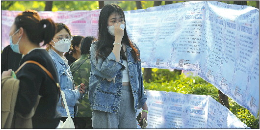 4月13日,已有不少人来千佛山上看相亲展牌。 齐鲁晚报·齐鲁壹点记者 王媛 摄