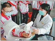 “同学,往里边走,戴好口罩。”在商河县中医医院,高三学子正在忙着进行普通高考体检。记者看到,学生带着身份证,按组排成五队,排队时学生戴口罩间隔一米,依次进入指定各科体检诊室,每班不超过30人,其他学生在场外排队等候依次进入。