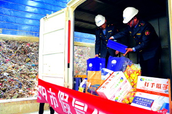 本报烟台4月14日讯(记者 李顺高 通讯员 隋雅斌) 从假冒“海之蓝”酒、假“打手”瓜子到伪劣辣条,再到过期药品……14日,在海阳瀚蓝(海阳)固废处置有限公司,近一吨重的假冒伪劣商品随着机器的运转被集中销毁。