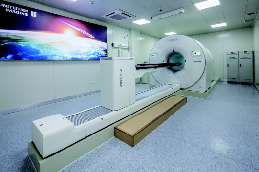 程召平介绍,医院于2020年5月引进的全球第三台全景动态PET-CT(uEXPLORER探索者),是首台正式应用于临床的全景动态PET-CT。与传统PET-CT相比,其轴向视野从20-30cm扩展至近2米,首次实现了一个床位完成从头到脚的全身扫描,可以对整个人体同时进行4D显像,以观测放射性示踪剂注射入人体后在血管内流动、扩散,最终被组织器官摄取并代谢的全过程,解决了传统PET-CT常规扫描不能覆盖全身而导致部分病灶漏诊的问题。