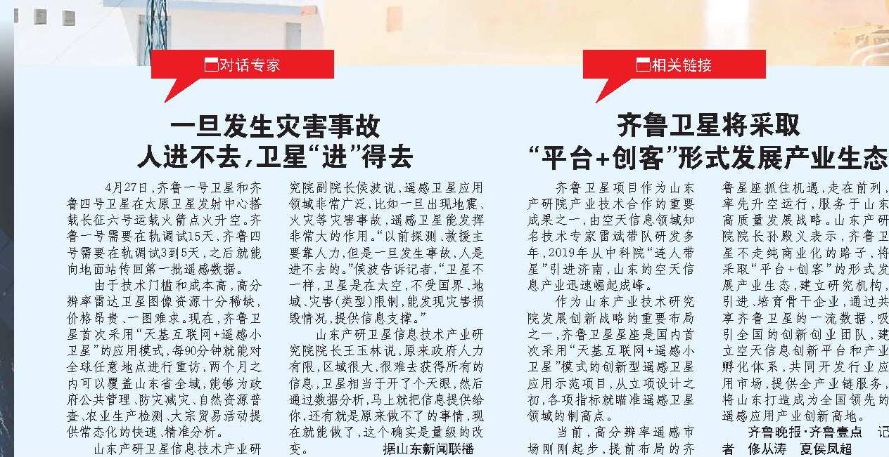 齐鲁卫星将采取“平台+创客”形式发展产业生态