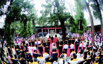 5月13日邹城孟庙内雅乐悠扬、庄严隆重,一年一度的纪念孟母孟子大典正在这儿举行。上午9时,“启扉——”声起,释奠雅乐《凝安之曲》奏响,棂星门缓缓开启,孟氏后裔及社会各界人士200余人,肩披金黄绶带,在文武舞生的引领下,端重地步入亚圣殿前,60名小学生齐诵孟子名言。随后,《浩然之曲》奏起,武舞者手持干戚,文舞者手持翟籥,翩翩起舞,周旋中规,折旋中矩,庄重平和、典雅纯朴,以此表达对孟母孟子的尊崇敬意。各界代表人士依次敬献花篮,向孟母孟子三鞠躬。“孟母仉氏,教子有道;亲正其蒙,卓有成效。生而冀长,劝学不懈;慈母启童……”,孟子第73代孙孟晓苏在现场行盥洗礼、恭读祝文。祝文颂扬孟母功德,深切追思孟子对中华优秀文化做出的突出贡献。