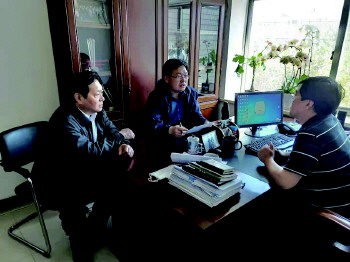 ▲图为派驻第六纪检监察组就企业反映相关问题到市生态环境局文登分局调查了解情况。