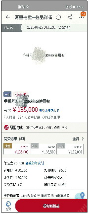 章丘法院将该号码在某宝司法拍卖网络平台进行公开拍卖,7人报名,274人设置提醒,6891人围观,最终以135000元成交。