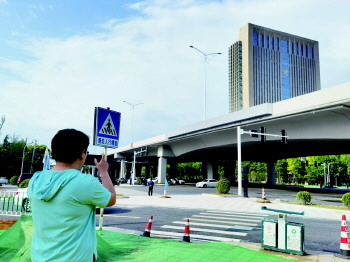 到了玉清街北海路桥下,看着拆除围挡“好久不见”的路口,张小鹏有点摸不着头脑,“这是咋走的,第一次走还不大会。”