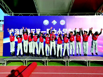 临港区永乐路小学在威海临港区第一届中小学生棒垒球联赛勇夺桂冠 摄影 柳井国