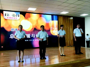 “我们这个节目叫《总有温暖与你成双》,筹备了近两个月,主要讲述的是一位老奶奶连续多天为我们公交车长点餐,关心关爱我们公交车长,但最后很不幸的是这位老奶奶去世了,我们心里感到非常难过,最后我们根据这个真实事件,写了一篇朗诵稿。”淄博公交周村分公司办公室内勤王萌萌告诉记者,她表示,很荣幸能参加5·20公交车长关爱日音乐·朗诵会,这次活动也体现了淄博公交对我们职工的关心关爱,相信在以后的工作中能更好地服务群众,做一名优秀的淄博公交人。