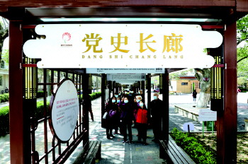 小游园里的“党史长廊”。