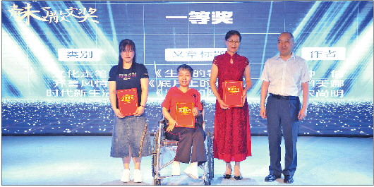 山东省作协副主席、山东师范大学文学院院长孙书文为一等奖获得者颁奖。 齐鲁晚报·齐鲁壹点记者 王媛 摄