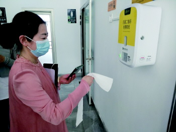 市民正在扫码取纸。