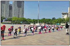 一年级10班的李昭润同学说:“轮滑教练王老师教的我们每个动作都非常仔细,我特别喜欢穿着速滑鞋快速前进的感觉,就像飞起来,特别刺激!妈妈特别支持我参加轮滑训练,很感谢学校。”