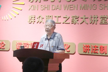 谢立亭向牌坊街社区的党员干部和群众宣讲家风家训。
