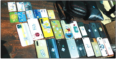 ◥警方查获的手机、银行卡等。