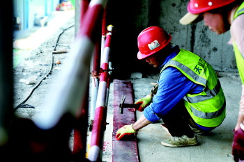 记者在现场看到,工人们正在忙碌地对地面水泥进行刮平夯实。项目负责人告诉记者,早在病房楼封顶之前,他们就已经完成地下结构验收。“工程的难点主要集中在地下部分,从基础到车库施工,用了49天,仅钢材就用了800多吨。”接下来,他们将全面转入砌体以及内外装修等工序的施工。