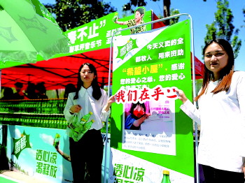 6月5日,中粮可口可乐(山东)有限公司联合烟台大学学生会,在烟台大学校内进行了一场雪碧义卖活动,义卖所得利润全部捐给“希望小屋”儿童关爱项目。