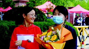 上午11点40分,完成考试的考生开始陆续走出校门,小程一眼便看到了人群中的姐姐。姐姐也看到了小程朝她跑来。“哇,真的有鲜花啊。我上午发挥得不错,考得特别好。”看到手捧鲜花的小程时,姐姐也是十分兴奋。