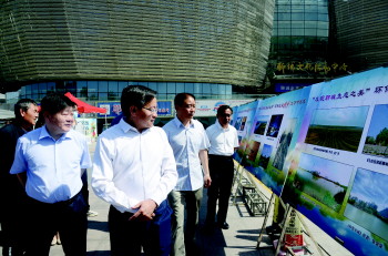出席活动的领导嘉宾参观摄影展。