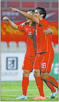 荣誉需要用实力捍卫。比赛第42分钟,武磊前场抢断后斜塞到右路,张稀哲禁区内冷静推射得手,中国1:0领先叙利亚。第66分钟,武磊高速杀入禁区内被阿勒玛出击扑倒,裁判判罚点球。武磊主罚得分,为中国队再添一球。第92分钟,蒿俊闵一脚挑传,尹鸿博下底倒三角回敲,张玉宁推射入网,中国队三球锁定胜局。