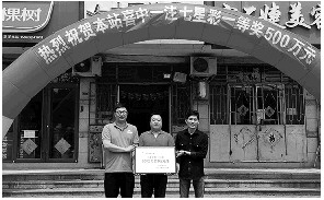 数据显示,7星彩第21066期前区开出号码“591044”,后区开出号码“2”。青岛中出的1注500万一等奖出自西海岸新区一家体彩实体店,中奖彩票是一张6元单式彩票。6月13日上午,西海岸新区的这家幸运投注站举办仪式庆祝大奖中出。“我们店里有不少人喜欢7星彩,规则调整之后,购买7星彩的人就更多了。”投注站逄站长说:“平时店里购买7星彩的人比较多,大多数都是选择单式投注,自己也想不起来谁中的奖。不过不管是谁中的,自己都一样开心,想第一时间和大家分享一下喜悦的心情。”青岛体彩中心副主任王海峰和西海岸新区教育和体育事业发展中心副主任丁明也来到该店,向逄站长颁发“7星彩500万大奖中出福地”奖牌。