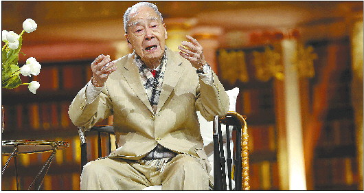 在央视的《朗诵者》节目,当时年近百岁的许渊冲依旧精神矍铄。