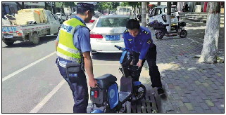 本报6月17日讯(通讯员 刘娜娜) 近日,为方便广大市民停车,缓解城区停车难问题,长清区交警大队根据12345市民热线反映的部分商家利用电动车、自行车、隔离墩以及杂物私自占用停车泊位的情况,联合静态办、停车公司开展整治行动。整治小组通过步行巡查、跟踪治理等方式,依法没收了违规占用停车位的障碍物,拖移清理停放在停车位的电动车,并对商铺经营者进行了警告教育。