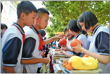 学生们积极参与“希望小屋 爱心共筑”公益义卖活动。