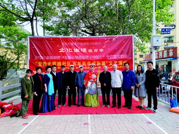 而与平日里的惠民演出所不同的是,这次登台献艺的演员中,还有来自任城区阜桥街道粉莲街社区的军魂艺术团。这支完全由社区居民组成的公益团体,在粉莲街莲心社区工作服务中心的组织下,首次站在了牌坊街社区的文化惠民演出舞台上。当演出临近结束的时候,两个社区的老党员和几名少先队员一起,站在谢立亭的身边,大家一起唱起了红歌。那一幕,让不少居民都红了眼眶,似乎看到了红色精神的传承。