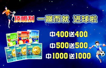 活动期间,购彩者凡在我省体彩销售网点购买20元面值“一蹴而就”或10元面值“进球啦”任意一款顶呱刮游戏,单张彩票中得指定金额奖级,经销售网点终端设备完成兑奖后,可获赠指定价值的即开票,具体活动内容如下: