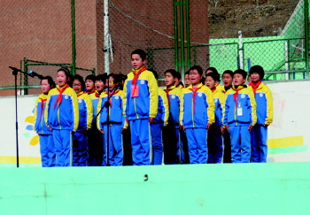 近日,沂源县三岔中心学校举行国旗下诵读展示活动。