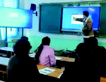 沂源县三岔中心学校召开同步课堂培训会。 (丁艳供稿)