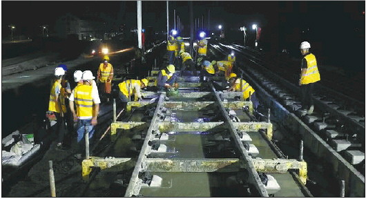 6月20日晚10点30分,由中铁十局负责施工的庄寨站完成最后70米双块式无砟轨道道床板灌注,标志着鲁南高铁菏泽至兰考段(山东段)铺轨“最后一公里”打通,向着年底开通运营又迈出了坚实一步。