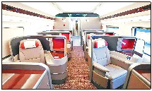 一等座椅增加了可调节头靠、电动腿靠等,还将原来设置在座椅扶手上的小桌板改为设置在前排座椅靠背上。