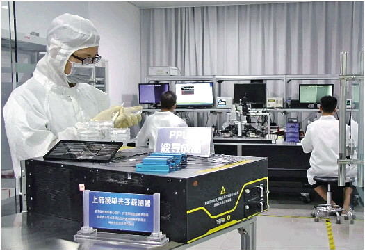 日前,济南量子技术研究院与中国科技大学合作,突破现场远距离高性能单光子干涉关键技术,采用两种不同技术方案,分别实现428公里和511公里的双场量子密钥分发,创造了现场无中继光纤量子密钥分发传输距离的新世界纪录。图为济南量子技术研究院工作人员在进行科研攻关。