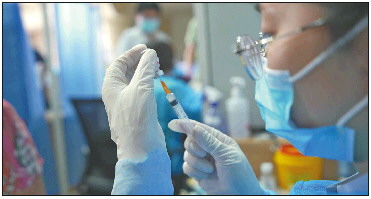 工作人员正在进行新冠病毒疫苗接种。