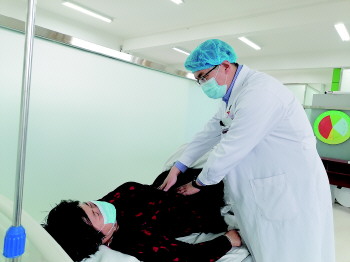 呼吸与危重症医学科二科主任韩先章认真为患者听诊。