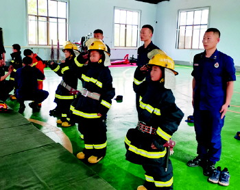 到消防队研学 日前,沂源县鲁山路小学组织学生到消防队开展研学活动,学生掌握了火灾逃生技巧和灭火方法。(宁荟聪)