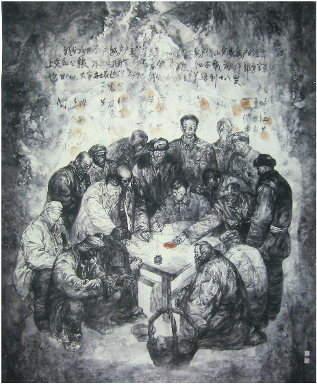 ▲《小岗村之夜》240cm×200cm 1999年创作 入选第九届全国美展