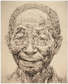 《在那个夏天》展现了钢铁企业女工的风采;《谁持彩练当空舞》为我国第一位载人飞船宇航员杨利伟造像;2009年创作的《大地之子——袁隆平》更是震撼非常。为了表达自己对袁隆平先生的崇敬之情,在高达2米的画面上,专意刻画了他的容貌,他的笔触运用了稻田和稻穗的意向,把袁隆平先生为之奋斗终生的理想和贡献艺术地呈现了出来。这种巧思与深情,在哀悼袁隆平先生逝世的当下,更显珍贵与悲戚,令人动容。