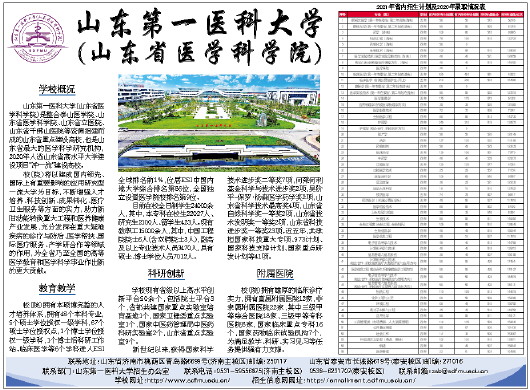 山东第一医科大学(山东省医学科学院)是整合泰山医学院、山东省医学科学院、山东省立医院、山东省千佛山医院等资源组建而成的山东省重点建设高校,也是山东省最大的医学科学研究机构,2020年入选山东省高水平大学建设项目“冲一流”建设高校。