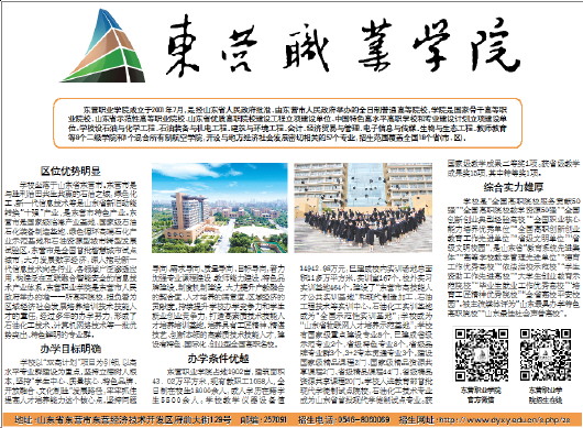 地址:山东省东营市东营经济技术开发区府前大街129号 邮编:257091 招生电话:0546-8060069 招生网址:http://www.dyxy.edu.cn/s.php/zs