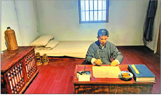 中共青岛党史纪念馆内复原的邓恩铭工作场景。