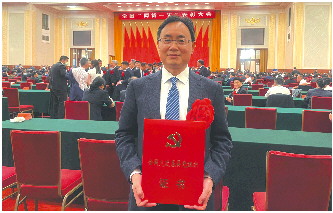 济青高速铁路有限公司党委书记、董事长杨俊泉在人民大会堂参加全国“两优一先”表彰大会。