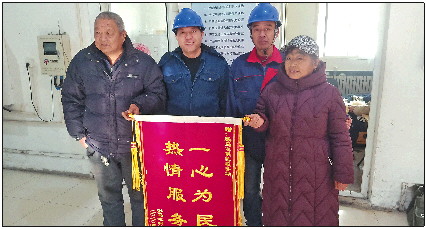 去年12月7日,东泰热力所辖一小区70多岁的梁大爷和老伴一起相互搀扶着来到张马屯供热服务站,送上一面鲜艳的锦旗,表达他们对东泰热力供热管家的感谢。“子女都不在身边,家中暖气哗哗地漏水,我们非常着急,赶紧给管家打电话,不一会儿小张和小李两位管家就过来。他俩仔细查看了供暖设备,换了几个零件,又冲洗了暖气片,现在家里可热了!我们今天过来谢谢他们。”老两口激动地说。